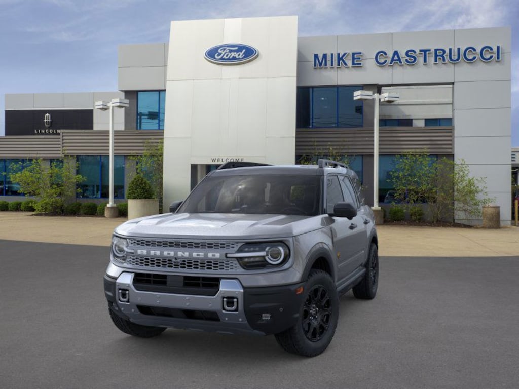 This 2025 Ford Bronco Sport Badlands comes equipped with Badlands Tech Package (B&O Sound System by Bang & Olufsen, Connected Navigation, and HD Radio), Equipment Group 400A, 4-Wheel Disc Brakes, 6 Speakers, ABS brakes, Air Conditioning, Alloy wheels, AM/FM radio: SiriusXM, AM/FM Stereo, Auto High-beam Headlights, Auto-dimming Rear-View mirror, Automatic temperature control, Brake assist, Compass, Delay-off headlights, Driver door bin, Driver vanity mirror, Dual front impact airbags, Dual front side impact airbags, Electronic Stability Control, Emergency communication system: SYNC 4 911 Assist, Four wheel independent suspension, Front anti-roll bar, Front Bucket Seats, Front Center Armrest, Front fog lights, Front reading lights, Fully automatic headlights, Garage door transmitter, Heated door mirrors, Heated front seats, Heated steering wheel, Illuminated entry, Knee airbag, Leather Trimmed Front Bucket Seats, Low tire pressure warning, Memory seat, Occupant sensing airbag, Outside temperature display, Overhead airbag, Overhead console, Panic alarm, Passenger door bin, Passenger vanity mirror, Power door mirrors, Power driver seat, Power Moonroof, Power passenger seat, Power steering, Power windows, Radio data system, Rear anti-roll bar, Rear reading lights, Rear seat center armrest, Rear window defroster, Rear window wiper, Remote keyless entry, Security system, SiriusXM, Speed control, Speed-sensing steering, Speed-Sensitive Wipers, Split folding rear seat, Steering wheel mounted audio controls, SYNC 4 w/Enhanced Voice Recognition, Tachometer, Telescoping steering wheel, Tilt steering wheel, Traction control, Trip computer, Variably intermittent wipers, and Wheels: 17" Matte Black-Painted Aluminum. Price includes: $1000 - Retail Bonus Cash. Exp. 09/30/2025 $500 - Retail Trade Assist. Exp. 09/30/2025