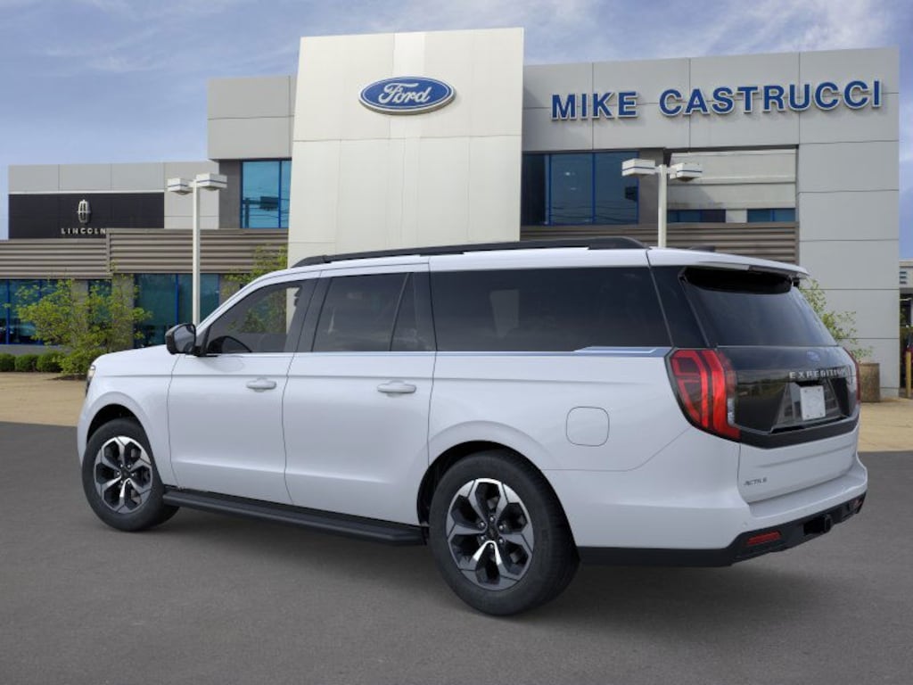 This 2026 Ford Expedition Max Active comes equipped with Equipment Group 200A Select Package (26mm Engine Radiator, Active Air Dam, Heavy-Duty Trailer Tow, and Integrated Trailer Brake Control), Ford Connectivity Package (1-Year Included), 3.73 Axle Ratio, 3rd row seats: split-bench, 4-Wheel Disc Brakes, 6 Speakers, ABS brakes, Air Conditioning, Alloy wheels, AM/FM radio: SiriusXM with 360L, Apple CarPlay/Android Auto, Auto High-beam Headlights, Auto-dimming Rear-View mirror, Automatic temperature control, Brake assist, Bumpers: body-color, Cloth Front Captain's Chairs, Compass, Delay-off headlights, Driver door bin, Driver vanity mirror, Dual front impact airbags, Dual front side impact airbags, Electronic Stability Control, Emergency communication system: 911 Assist, Exterior Parking Camera Rear, Ford Digital Experience, Four wheel independent suspension, Front & 2nd Rows Floor Liners w/o Carpet Mats, Front anti-roll bar, Front Bucket Seats, Front Center Armrest, Front dual zone A/C, Front reading lights, Fully automatic headlights, Heated door mirrors, Illuminated entry, Low tire pressure warning, Navigation System, Occupant sensing airbag, Outside temperature display, Overhead airbag, Overhead console, Panic alarm, Passenger door bin, Passenger vanity mirror, Power door mirrors, Power driver seat, Power passenger seat, Power steering, Power windows, Radio data system, Radio: AM/FM Stereo w/MP3 Capable, Rear air conditioning, Rear anti-roll bar, Rear reading lights, Rear window defroster, Rear window wiper, Reclining 3rd row seat, Remote keyless entry, Security system, SiriusXM w/360L, Speed control, Speed-sensing steering, Speed-Sensitive Wipers, Split folding rear seat, Spoiler, Steering wheel mounted audio controls, Tachometer, Telescoping steering wheel, Tilt steering wheel, Traction control, Trip computer, Variably intermittent wipers, Voltmeter, Wheels: 18" x 8.5" Dark Alloy Painted Aluminum, and Wheels: 20" x 8.5" Bright Machined Aluminum.