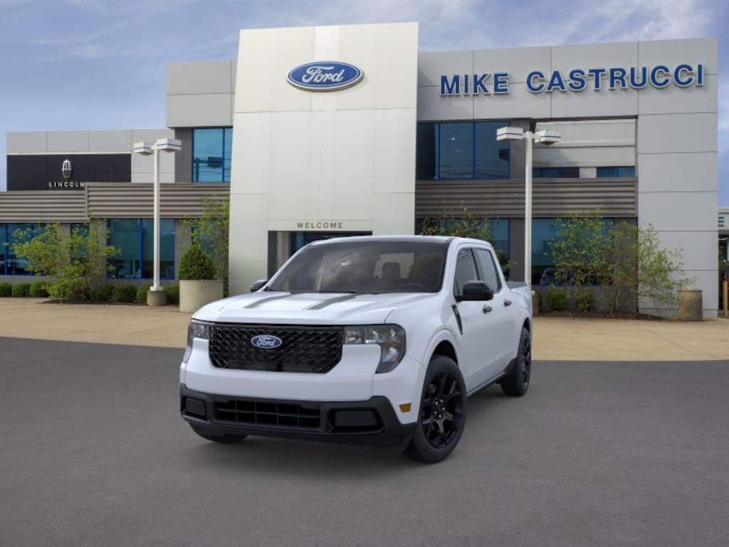 This 2026 Ford Maverick XLT comes equipped with Black Appearance Package (Black Grille, Black Interior Accents, Black Painted Mirrors, Unique Cloth Front Bucket Seats with Black Appearance, and Wheels: 19" Black Painted Aluminum), Equipment Group 301A (2.91 Axle Ratio, Radio: AM/FM Stereo with 6 Speakers, SiriusXM with 360L, SYNC 4 with Enhanced Voice Recognition, Unique Cloth Front Bucket Seats, and Wheels: 17" Carbonized Gray Painted Aluminum), Ford Co-Pilot360 (Auto High Beams, BLIS with Cross-Traffic Alert and Trailer Coverage, Exit Warning, Intersection Assist, Lane-Keeping System, Power Glass Manual-Folding Mirrors, Pre-Collision Assist with Automatic Emergency Braking, Rear Cross Traffic Braking, Rear Parking Sensors, and Rear-View Camera), Ford Connectivity Package (1-Year Included), Internet access capable: 5G Modem - Ford Connectivity Package, 2.5L I-4 Hybrid, 4-Wheel Disc Brakes, 6 Speakers, ABS brakes, Air Conditioning, Alloy wheels, AM/FM radio: SiriusXM with 360L, Apple CarPlay/Android Auto, Auto High-beam Headlights, Automatic temperature control, Brake assist, Bumpers: body-color, Compass, Delay-off headlights, Driver door bin, Driver vanity mirror, Dual front impact airbags, Dual front side impact airbags, Electronic Stability Control, Emergency communication system: SYNC 4 911 Assist, Exterior Parking Camera Rear, Four wheel independent suspension, Front and Rear Floor Liners Without Carpet Mats, Front anti-roll bar, Front Bucket Seats, Front Center Armrest, Front reading lights, Fully automatic headlights, Illuminated entry, Knee airbag, Low tire pressure warning, Occupant sensing airbag, Outside temperature display, Overhead airbag, Overhead console, Panic alarm, Passenger door bin, Passenger vanity mirror, Power door mirrors, Power Moonroof, Power steering, Power windows, Radio data system, Rear anti-roll bar, Rear seat center armrest, Rear step bumper, Remote keyless entry, Security system, Speed control, Speed-sensing steering, Steering wheel mounted audio controls, Telescoping steering wheel, Tilt steering wheel, Traction control, and Trip computer.