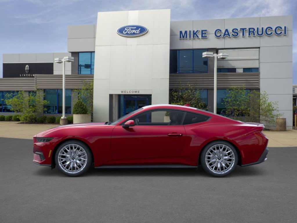 This 2026 Ford Mustang EcoBoost Premium comes equipped with ABS brakes, Alloy wheels, Compass, Electronic Stability Control, Front dual zone A/C, Heated front seats, Illuminated entry, Low tire pressure warning, Remote keyless entry, Traction control, 4-Wheel Disc Brakes, 9 Speakers, ActiveX Trimmed Bucket Seats, Air Conditioning, AM/FM radio: SiriusXM with 360L, AM/FM Stereo, Auto High-beam Headlights, Automatic temperature control, Brake assist, Bumpers: body-color, Climate Controlled Heated/Cooled Front Seats, Delay-off headlights, Driver door bin, Driver vanity mirror, Dual front impact airbags, Dual front side impact airbags, Emergency communication system: 911 Assist, Exterior Parking Camera Rear, Four wheel independent suspension, Front anti-roll bar, Front Bucket Seats, Front Center Armrest, Front reading lights, Fully automatic headlights, HD Radio, Heated steering wheel, Knee airbag, Leather Shift Knob, Leather steering wheel, Occupant sensing airbag, Outside temperature display, Overhead airbag, Overhead console, Panic alarm, Passenger door bin, Passenger vanity mirror, Power door mirrors, Power driver seat, Power passenger seat, Power steering, Power windows, Radio data system, Rain sensing wipers, Rear anti-roll bar, Rear Parking Sensors, Rear window defroster, SiriusXM w/360L, Speed control, Speed-sensing steering, Speed-Sensitive Wipers, Split folding rear seat, Sport steering wheel, Steering wheel mounted audio controls, SYNC 4, Tachometer, Telescoping steering wheel, Tilt steering wheel, Trip computer, Variably intermittent wipers, Ventilated front seats, Voltmeter, and Wheels: 18" x 8" Painted Shadow Silver Cast Alum.
