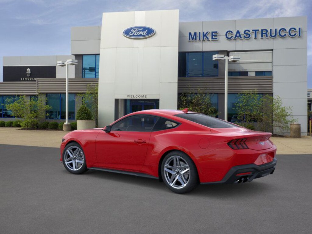 This 2026 Ford Mustang EcoBoost Premium comes equipped with 4-Wheel Disc Brakes, ABS brakes, Active Valve Performance Exhaust, Air Conditioning, Alloy wheels, AM/FM Stereo, Auto High-beam Headlights, Automatic temperature control, Brake assist, Bumpers: body-color, Compass, Delay-off headlights, Driver door bin, Driver vanity mirror, Dual front impact airbags, Dual front side impact airbags, Electronic Stability Control, Emergency communication system: 911 Assist, Exterior Parking Camera Rear, Floor Mats, 1st Row, Black w/Black Pony Logo, Four wheel independent suspension, Front anti-roll bar, Front Bucket Seats, Front Center Armrest, Front dual zone A/C, Front reading lights, Fully automatic headlights, Illuminated entry, Knee airbag, Leather Shift Knob, Low tire pressure warning, Occupant sensing airbag, Outside temperature display, Overhead airbag, Overhead console, Panic alarm, Passenger door bin, Passenger vanity mirror, Power door mirrors, Power steering, Power windows, Premium Floor Liners Front & Rear (w/Carpet Mats), Radio data system, Rain sensing wipers, Rear anti-roll bar, Rear Parking Sensors, Rear window defroster, Remote keyless entry, Speed control, Speed-sensing steering, Speed-Sensitive Wipers, Split folding rear seat, Sport steering wheel, Steering wheel mounted audio controls, SYNC 4, Tachometer, Telescoping steering wheel, Tilt steering wheel, Traction control, Trip computer, Variably intermittent wipers, Voltmeter, Wheels: 18" x 8" Painted Shadow Silver Cast Alum, and Wheels: 19" x 8.5" Premier Polished Aluminum.