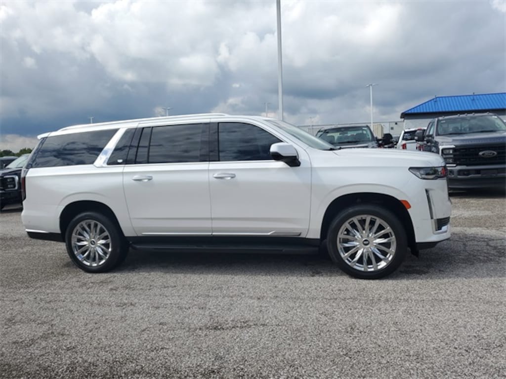 This 2023 Cadillac Escalade ESV Premium comes equipped with Preferred Equipment Group 1SB (Adaptive Cruise Control, AKG Studio 19-Speaker Audio System, Automatic Seat Belt Tightening, Door Lock & Latch Shields, Enhanced Automatic Emergency Braking, Enhanced Automatic Parking Assist, Glass Breakage Sensor, Heated & Ventilated Driver & Front Passenger Seats, Lane Change Alert w/Side Blind Zone Alert, Mechanical Limited-Slip Differential, Power Panoramic Tilt-Sliding Sunroof, Rear Camera Mirror, Rear Camera Mirror Washer, Rear Cross Traffic Alert, Reconfigurable Full-Color Head-Up Display, Reverse Automatic Braking, Running Board Assist Steps, Theft-Deterrent Alarm System, Vehicle Inclination Sensor, and Vehicle Interior Movement Sensor), 16.9" Diagonal OLED Infotainment Screen, 19 Speakers, 2-Presets Memory For Driver Seat Adjuster, 2-Way Driver Power Lumbar Seat Adjuster, 2-Way Front Passenger Power Lumbar Seat Adjuster, 3.23 Axle Ratio, 3rd row seats: split-bench, 4-Way Power Driver Lumbar Seat Adjuster, 4-Way Power Front Passenger Lumbar Seat Adjuster, 4-Wheel Disc Brakes, 8-Way Power Driver Seat Adjuster, 8-Way Power Front Passenger Seat Adjuster, ABS brakes, Air Conditioning, Alloy wheels, AM/FM radio: SiriusXM with 360L, Apple CarPlay/Android Auto, Audio memory, Auto High-beam Headlights, Auto tilt-away steering wheel, Auto-dimming door mirrors, Automatic temperature control, Brake assist, Bumpers: body-color, Compass, Delay-off headlights, Driver door bin, Driver vanity mirror, Dual front impact airbags, Dual front side impact airbags, Electronic Stability Control, Emergency communication system: OnStar and Cadillac connected services capable, Exterior Parking Camera Rear, Four wheel independent suspension, Front anti-roll bar, Front Bucket Seats, Front Center Armrest w/Storage, Front dual zone A/C, Front reading lights, Fully automatic headlights, Garage door transmitter, HD Radio, Heads-Up Display, Heated door mirrors, Heated Driver & Front Passenger Seats, Heated front seats, Heated rear seats, Heated steering wheel, Illuminated entry, Leather Seating Surfaces w/Mini-Chevron Perf Inserts, Low tire pressure warning, Memory seat, Navigation System, Not Equipped w/2nd Row Express-Up Window Control, Not Equipped w/4-Way Driver & Fr Pass Pwr Lumbar, Occupant sensing airbag, Outside temperature display, Overhead airbag, Overhead console, Panic alarm, Passenger door bin, Passenger vanity mirror, Power door mirrors, Power driver seat, Power Liftgate, Power moonroof, Power passenger seat, Power steering, Power windows, Premium Smooth Ride Suspension, Radio data system, Radio: AM/FM w/Navigation, Rain sensing wipers, Rear air conditioning, Rear anti-roll bar, Rear reading lights, Rear window defroster, Rear window wiper, Remote keyless entry, Security system, SiriusXM w/360L, Speed control, Split folding rear seat, Spoiler, Steering wheel memory, Steering wheel mounted audio controls, Super Cruise, Tachometer, Teen Driver, Telescoping steering wheel, Tilt steering wheel, Traction control, Trip computer, Turn signal indicator mirrors, Variably intermittent wipers, Ventilated front seats, Voltmeter, Wheel Locks, Wheels: 22" 14-Spoke Alloy w/Polished Finish, and Wireless Apple CarPlay/Wireless Android Auto.