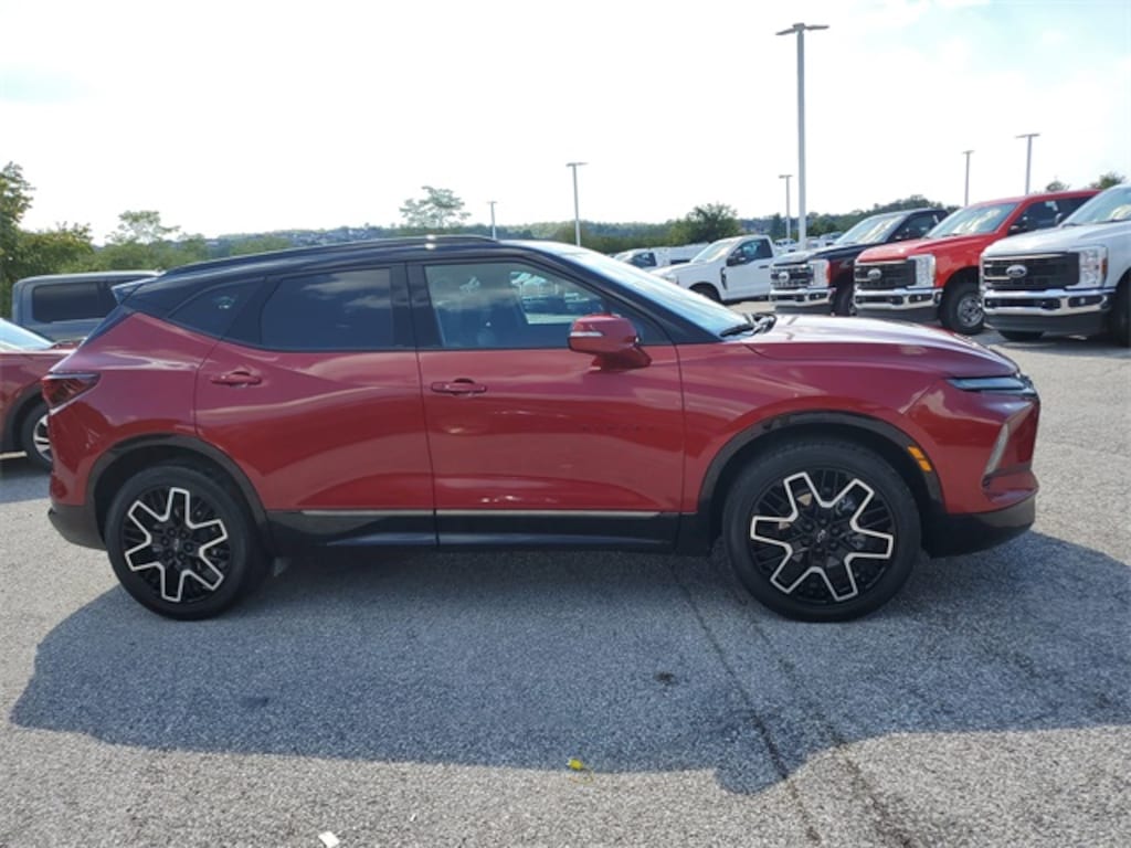 This 2023 Chevrolet Blazer RS comes equipped with Floor Liner Package (LPO) (1st & 2nd Row All-Weather Floor Liners (LPO) and Integrated Cargo Liner (LPO)), Preferred Equipment Group 1RS (Heated Steering Wheel and Rear Park Assist w/Audible Warning), AWD, 3.49 Final Drive Axle Ratio, 4-Wheel Disc Brakes, 6-Way Power Front Passenger Seat Adjuster, 8 Speakers, 8-Way Power Driver Seat Adjuster, ABS brakes, Air Conditioning, Alloy wheels, AM/FM radio: SiriusXM with 360L, Apple CarPlay/Android Auto, Auto High-beam Headlights, Auto-dimming door mirrors, Auto-dimming Rear-View mirror, Automatic temperature control, Black 2-Tone Roof, Black Illuminated Front Bowtie Emblem (LPO), Black Lug Nut & Wheel Lock Kit (LPO), Bose Premium 8-Speaker Audio System Feature, Brake assist, Bumpers: body-color, Child-Seat-Sensing Airbag, Compass, Delay-off headlights, Driver door bin, Driver vanity mirror, Dual front impact airbags, Dual front side impact airbags, Electronic Stability Control, Emergency communication system: OnStar and Chevrolet connected services capable, Four wheel independent suspension, Front anti-roll bar, Front Bucket Seats, Front Center Armrest, Front dual zone A/C, Front reading lights, Fully automatic headlights, Garage door transmitter, Heated door mirrors, Heated Driver & Front Passenger Seats, Heated front seats, Heated steering wheel, Illuminated entry, Knee airbag, Leather Shift Knob, Low tire pressure warning, Navigation System, Not Equipped w/Rear Park Assist, Occupant sensing airbag, Outside temperature display, Overhead airbag, Overhead console, Panic alarm, Passenger door bin, Passenger vanity mirror, Perforated Leather-Appointed Seat Trim, Power door mirrors, Power Driver Lumbar Control, Power driver seat, Power Liftgate, Power Panoramic Tilt-Sliding Sunroof, Power passenger seat, Power steering, Power windows, Premium audio system: Chevrolet Infotainment 3 Premium, Radio data system, Radio: Chevrolet Infotainment 3 Premium System, Rear anti-roll bar, Rear reading lights, Rear seat center armrest, Rear window defroster, Rear window wiper, Remote keyless entry, Ride & Handling Suspension, Security system, SiriusXM w/360L, Speed control, Speed-sensing steering, Split folding rear seat, Spoiler, Steering wheel mounted audio controls, Tachometer, Telescoping steering wheel, Tilt steering wheel, Traction control, Trip computer, Turn signal indicator mirrors, Variably intermittent wipers, Voltmeter, Wheels: 20" Technical Gray Aluminum, and Wheels: 21" High Gloss Black w/Machined Face.