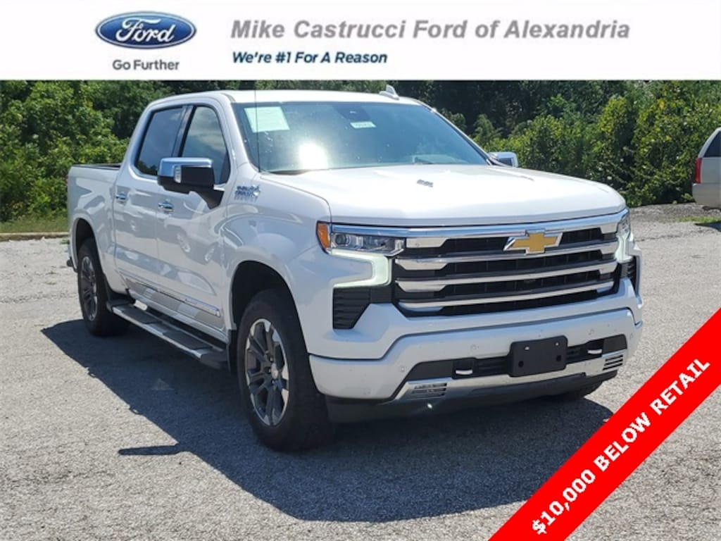 This 2024 Chevrolet Silverado 1500 High Country comes equipped with High Capacity Suspension Package, Preferred Equipment Group 3LZ (10-Way Power Driver Seat w/Lumbar, 10-Way Power Passenger Seat Adjuster w/Lumbar, 12.3" Multicolor Reconfigurable Digital Display, 120-Volt Bed Mounted Power Outlet, 120-Volt Interior Power Outlet, 2 USB Data Ports, 2nd Row Heated Outboard Seats, Adaptive Cruise Control, Auto-Dimming Inside Rear-View Mirror, Auto-Locking Rear Differential, Bed View Camera, Bluetooth® For Phone, Body-Color Painted Mirror Caps, Chevrolet Connected Access Capable, Chevytec Spray-On Black Bedliner, Chrome Assist Steps, Chrome Recovery Hooks, Color-Keyed Carpeting Floor Covering, Deep-Tinted Glass, Driver Memory, Dual Exhaust w/Polished Outlets, Dual Rear USB Ports (Charge Only), Electric Rear-Window Defogger, Electrical Steering Column Lock, Floor Mounted Center Console, Front Carpeted Floor Mats, Front LED Fog Lamps, Front Rain-Sensing Wipers, HD Surround Vision, Heated Driver & Front Outboard Passenger Seats, Heated Steering Wheel, Hitch Guidance w/Hitch View, In-Vehicle Trailering System App, Integrated Trailer Brake Controller, Keyless Open & Start, LED Cargo Area Lighting, OnStar & Chevrolet Connected Services Capable, Outside Heated Power-Adjustable Mirrors, Perimeter Lighting, Power Front Passenger Windows w/Express Up/Down, Power Front Windows w/Driver Express Up/Down, Power Rear Windows w/Express Down, Power Sliding Rear Window w/Rear Defogger, Power Tailgate, Power Tilt & Telescoping Steering Column, Rear Carpeted Floor Mats, Rear Cross Traffic Braking, Rear Pedestrian Alert, Rear Wheelhouse Liners, Remote Vehicle Starter System, Safety Alert Seat, SiriusXM w/360L, Standard Tailgate, Steering Wheel Audio Controls, Theft Deterrent System (Unauthorized Entry), Trailer Camera Provisions, Trailer Side Blind Zone Alert, Ultrasonic Front & Rear Park Assist, Universal Home Remote, Ventilated Driver & Front Passenger Seats, Wi-Fi Hot Spot Capable, and Wrapped Steering Wheel), Trailering Package (Hitch Guidance), Up-Level Rear Seat w/Storage Package, 10-Speed Automatic, 4WD, Jet Black/Umber Leather, 170 Amp Alternator, 3.23 Rear Axle Ratio, 4-Wheel Disc Brakes, 7 Speakers, ABS brakes, Air Conditioning, Alloy wheels, AM/FM radio: SiriusXM with 360L, Auto High-beam Headlights, Auto-dimming door mirrors, Auto-dimming Rear-View mirror, Automatic temperature control, Bodyside moldings, Brake assist, Bumpers: body-color, Compass, Delay-off headlights, Driver door bin, Driver vanity mirror, Dual Active Exhaust, Dual front impact airbags, Dual front side impact airbags, Electronic Stability Control, Electronic Transmission Range Selector Shifter, Enhanced Automatic Emergency Braking, Following Distance Indicator, Forward Collision Alert, Front anti-roll bar, Front Bucket Seats, Front Center Armrest, Front dual zone A/C, Front fog lights, Front Pedestrian Braking, Front reading lights, Front wheel independent suspension, Fully automatic headlights, Garage door transmitter, Genuine wood console insert, Genuine wood dashboard insert, Genuine wood door panel insert, Heated door mirrors, Heated front seats, Heated rear seats, Heated steering wheel, Illuminated entry, IntelliBeam Automatic High Beam On/Off, Lane Keep Assist w/Lane Departure Warning, Low tire pressure warning, Memory seat, Occupant sensing airbag, Outside temperature display, Overhead airbag, Overhead console, Panic alarm, Passenger door bin, Passenger vanity mirror, Perforated Leather Seat Trim, Power door mirrors, Power driver seat, Power passenger seat, Power steering, Power windows, Premium audio system: Chevrolet Infotainment 3 Premium, Premium Bose 7-Speaker Sound System, Radio data system, Radio: Chevrolet Infotainment 3 Premium System, Rain sensing wipers, Rear readin