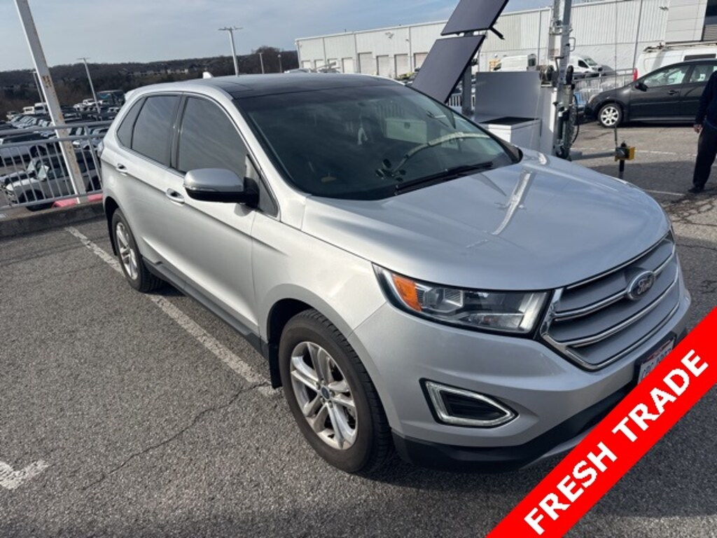 This 2017 Ford Edge SEL comes equipped with Cold Weather Package (Front & Rear Floor Liners and Heated Steering Wheel), Equipment Group 201A (Leather-Trimmed Heated Bucket Seats, Premium 9 Speaker Audio, and SYNC 3), 18" Polished Aluminum Wheels, 4-Wheel Disc Brakes, 6 Speakers, ABS brakes, Air Conditioning, Alloy wheels, AM/FM radio: SiriusXM, AM/FM Stereo w/Single CD, Auto-dimming Rear-View mirror, Automatic temperature control, Axle Ratio: TBD, Brake assist, Bumpers: body-color, CD player, Compass, Delay-off headlights, Driver door bin, Driver vanity mirror, Dual front impact airbags, Dual front side impact airbags, Electronic Stability Control, Emergency communication system: SYNC 3 911 Assist, Exterior Parking Camera Rear, Four wheel independent suspension, Front anti-roll bar, Front Bucket Seats, Front Center Armrest w/Storage, Front dual zone A/C, Front reading lights, Fully automatic headlights, Heated door mirrors, Illuminated entry, Knee airbag, Leather Shift Knob, Low tire pressure warning, Occupant sensing airbag, Outside temperature display, Overhead airbag, Overhead console, Panic alarm, Panoramic Vista Roof, Passenger door bin, Passenger vanity mirror, Power door mirrors, Power driver seat, Power passenger seat, Power steering, Power windows, Rear anti-roll bar, Rear Parking Sensors, Rear reading lights, Rear seat center armrest, Rear window defroster, Rear window wiper, Remote keyless entry, SiriusXM Radio, Speed control, Speed-Sensitive Wipers, Split folding rear seat, Spoiler, Steering wheel mounted audio controls, SYNC, Tachometer, Telescoping steering wheel, Tilt steering wheel, Traction control, Trip computer, Turn signal indicator mirrors, Unique Cloth Bucket Seats, Variably intermittent wipers, and Wheels: 18" Sparkle Silver-Painted Aluminum.