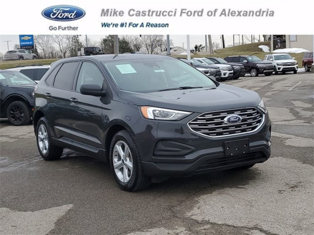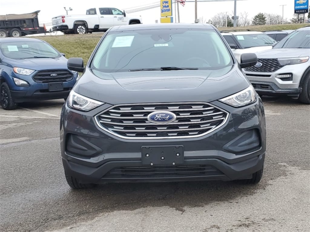 This 2021 Ford Edge SE comes equipped with Equipment Group 100A, AWD, 3.80 Axle Ratio, 4-Wheel Disc Brakes, 6 Speakers, ABS brakes, Air Conditioning, Alloy wheels, AM/FM radio: SiriusXM with 360L, Auto High-beam Headlights, Automatic temperature control, Brake assist, Bumpers: body-color, Cloth Bucket Seats, Compass, Delay-off headlights, Driver door bin, Driver vanity mirror, Dual front impact airbags, Dual front side impact airbags, Electronic Stability Control, Emergency communication system: SYNC 4 911 Assist, FordPass Connect, Four wheel independent suspension, Front anti-roll bar, Front Bucket Seats, Front Center Armrest w/Storage, Front dual zone A/C, Front License Plate Bracket, Front reading lights, Fully automatic headlights, Illuminated entry, Knee airbag, Low tire pressure warning, Occupant sensing airbag, Outside temperature display, Overhead airbag, Overhead console, Panic alarm, Passenger door bin, Passenger vanity mirror, Power door mirrors, Power steering, Power windows, Radio: AM/FM Stereo/MP3 Capable, Rear anti-roll bar, Rear reading lights, Rear seat center armrest, Rear window defroster, Rear window wiper, Remote keyless entry, SiriusXM w/360L, Speed control, Speed-Sensitive Wipers, Split folding rear seat, Spoiler, Steering wheel mounted audio controls, SYNC 4A w/Enhanced Voice Recognition, Tachometer, Telescoping steering wheel, Tilt steering wheel, Traction control, Trip computer, Variably intermittent wipers, and Wheels: 18" Sparkle Silver-Painted Aluminum.