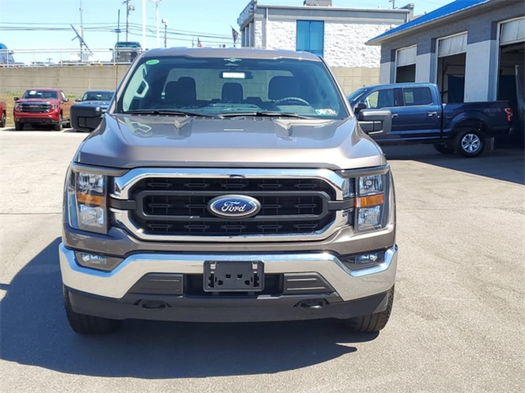 This 2023 Ford F-150 XLT comes equipped with 4WD, 18" Silver Painted Aluminum Wheels, 3.31 Axle Ratio, 4-Wheel Disc Brakes, 6 Speakers, 8-Way Power Driver's Seat w/Power Lumbar, ABS brakes, Air Conditioning, Alloy wheels, AM/FM radio, Auto High-beam Headlights, Brake assist, Bumpers: chrome, Cloth 40/20/40 Front Seat, Compass, Delay-off headlights, Driver door bin, Driver vanity mirror, Dual front impact airbags, Dual front side impact airbags, Electronic Stability Control, Emergency communication system: SYNC 4 911 Assist, Exterior Parking Camera Rear, Front anti-roll bar, Front Center Armrest w/Storage, Front fog lights, Front License Plate Bracket, Front reading lights, Front wheel independent suspension, Fully automatic headlights, Heated door mirrors, Illuminated entry, Low tire pressure warning, Occupant sensing airbag, Outside temperature display, Overhead airbag, Overhead console, Panic alarm, Passenger door bin, Passenger vanity mirror, Power door mirrors, Power steering, Power windows, Radio data system, Radio: AM/FM Stereo w/6 Speakers, Rear reading lights, Rear step bumper, Rear window defroster, Remote keyless entry, Security system, Speed control, Speed-sensing steering, Split folding rear seat, Steering wheel mounted audio controls, SYNC 4, Tachometer, Telescoping steering wheel, Tilt steering wheel, Traction control, Trip computer, Variably intermittent wipers, Voltmeter, and Wheels: 17" Silver Painted Aluminum.