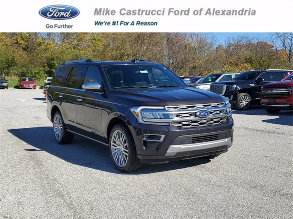 This 2024 Ford Expedition Platinum comes equipped with Equipment Group 600A Standard Package, 4WD, 1st & 2nd Row Floor Liners w/Carpet Mats, 22 Speakers, 3.31 Axle Ratio, 3rd row seats: split-bench, 4-Wheel Disc Brakes, ABS brakes, Adaptive suspension, Adjustable pedals, Air Conditioning, Alloy wheels, AM/FM radio: SiriusXM with 360L, Auto High-beam Headlights, Auto-dimming door mirrors, Auto-dimming Rear-View mirror, Automatic temperature control, Brake assist, Bumpers: body-color, Compass, Delay-off headlights, Driver door bin, Driver vanity mirror, Dual front impact airbags, Dual front side impact airbags, Electronic Stability Control, Emergency communication system: SYNC 4 911 Assist, Exterior Parking Camera Rear, Ford BlueCruise 1.0, Four wheel independent suspension, Front anti-roll bar, Front Bucket Seats, Front Center Armrest, Front dual zone A/C, Front fog lights, Front reading lights, Fully automatic headlights, Garage door transmitter, Genuine wood console insert, Genuine wood dashboard insert, Genuine wood door panel insert, Heated door mirrors, Heated front seats, Heated rear seats, Heated steering wheel, Heated/Ventilated Prem Lthr Front Captain's Chairs, Illuminated entry, Leather steering wheel, Low tire pressure warning, Memory seat, Navigation system: Connected Navigation, Occupant sensing airbag, Outside temperature display, Overhead airbag, Overhead console, Panic alarm, Passenger door bin, Passenger vanity mirror, Pedal memory, Power door mirrors, Power driver seat, Power Liftgate, Power moonroof, Power passenger seat, Power steering, Power windows, Radio data system, Radio: B&O Unleashed Sound System by Bang & Olufsen, Rain sensing wipers, Rear air conditioning, Rear anti-roll bar, Rear audio controls, Rear reading lights, Rear window defroster, Rear window wiper, Reclining 3rd row seat, Remote keyless entry, Security system, SiriusXM w/360L, Speed control, Speed-sensing steering, Speed-Sensitive Wipers, Split folding rear seat, Spoiler, Steering wheel memory, Steering wheel mounted audio controls, SYNC 4 w/Enhanced Voice Recognition, Tachometer, Telescoping steering wheel, Tilt steering wheel, Traction control, Trip computer, Turn signal indicator mirrors, Variably intermittent wipers, Ventilated front seats, Voltmeter, and Wheels: 22" 12-Spoke Polished Aluminum.