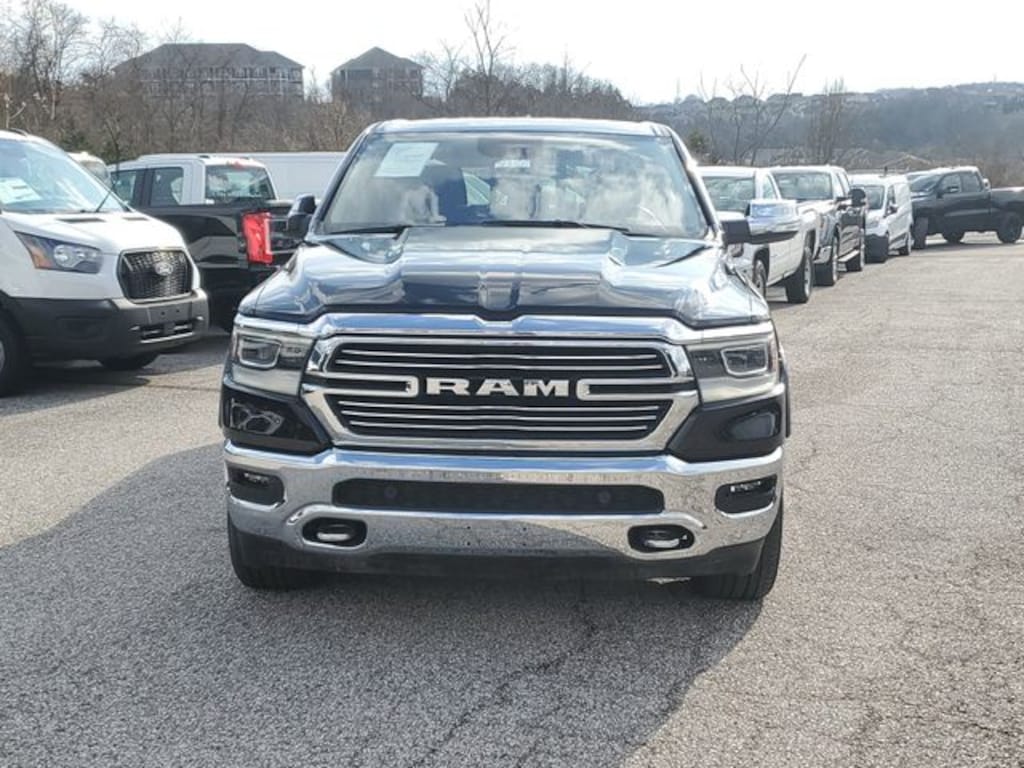 This 2022 Ram 1500 Laramie comes equipped with Bed Utility Group (MOPAR 4 Adjustable Cargo Tie-Down Hooks and Pick-Up Box Lighting), Chrome Appearance Group (Bright Day Light Opening Moldings, Chrome Tow Hooks, and Wheel to Wheel Side Steps), Laramie Level I Equipment Group (2nd Row In Floor Storage Bins, Auto High Beam Headlamp Control, Blind Spot & Cross Path Detection, Foam Bottle Insert (Door Trim Panel), ParkSense Front/Rear Park Assist w/Stop, Rain Sensitive Windshield Wipers, and Remote Tailgate Release), Quick Order Package 25H Laramie, #1 Seat Foam Cushion, 10 Speakers, 3 Rear Seat Head Restraints, 3.21 Rear Axle Ratio, 33 Gallon Fuel Tank, 4 Way Front Headrests, 4-Wheel Disc Brakes, 48V Belt Starter Generator, 4G LTE Wi-Fi Hot Spot, 8.4" Touchscreen Display, ABS brakes, Adjustable pedals, Air Conditioning, All R1 High Radios, All Radio Equipped Vehicles, Alloy wheels, AM/FM radio: SiriusXM, Anti-Spin Differential Rear Axle, Apple CarPlay, Apple CarPlay/Android Auto, Audio memory, Auto-dimming door mirrors, Auto-Dimming Exterior Driver Mirror, Auto-dimming Rear-View mirror, Automatic temperature control, Brake assist, Bumpers: chrome, Chrome Exterior Mirrors, Compass, Connected Travel & Traffic Services, Connectivity - US/Canada, Convex Wide-Angle Mirror Insert, Delay-off headlights, Disassociated Touchscreen Display, Driver door bin, Driver Seat Memory, Driver vanity mirror, Dual front impact airbags, Dual front side impact airbags, Electronic Stability Control, Exterior Mirrors Courtesy Lamps, Exterior Mirrors w/Heating Element, Exterior Mirrors w/Memory, Exterior Mirrors w/Supplemental Signals, For Details, Visit DriveUconnect.com, For More Info, Call 800-643-2112, Front anti-roll bar, Front Center Armrest w/Storage, Front dual zone A/C, Front fog lights, Front reading lights, Front Seat Back Map Pockets, Front wheel independent suspension, Fully automatic headlights, Garage door transmitter, Global Telematics Box Module (TBM), Google Android Auto, GPS Antenna Input, GPS Navigation, HD Radio, Heated door mirrors, Heated Front Seats, Heated front seats, Heated Steering Wheel, Heated steering wheel, Heavy-Duty Engine Cooling, Illuminated entry, Integrated Center Stack Radio, Integrated Voice Command w/Bluetooth, Leather steering wheel, Leather Trim 40/20/40 Bench Seat, Low tire pressure warning, Manufacturer's Statement of Origin, Memory seat, MOPAR Front & Rear Rubber Floor Mats, Occupant sensing airbag, Outside temperature display, Overhead airbag, Overhead console, Panic alarm, ParkView Rear Back-Up Camera, Passenger door bin, Passenger vanity mirror, Pedal memory, Power 2-Way Driver Lumbar Adjust, Power 2-Way Passenger Lumbar Adjust, Power 8-Way Driver & Passenger Seats, Power door mirrors, Power driver seat, Power passenger seat, Power steering, Power windows, Power-Folding Mirrors, Radio data system, Radio: Uconnect 5 Nav w/8.4" Display, Radio: Uconnect 5 W w/8.4" Display, Rear 60/40 Folding Seat, Rear anti-roll bar, Rear seat center armrest, Rear step bumper, Rear Wheelhouse Liners, Rear window defroster, Remote keyless entry, Security system, SiriusXM Radio Service, SiriusXM w/360L, Speed control, Split folding rear seat, Steering wheel mounted audio controls, Tachometer, Telescoping steering wheel, Tilt steering wheel, Traction control, Trip computer, Turn signal indicator mirrors, USB Host Flip, Variably intermittent wipers, Ventilated Front Seats, Ventilated front seats, Voltmeter, Wheels: 18" x 8" Aluminum Base Painted, and Wheels: 20" x 9" Premium Paint/PolisheD.