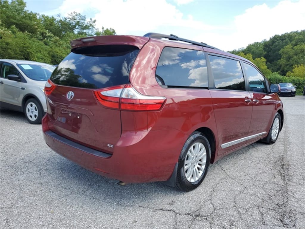 Maroon 2016 Toyota Sienna XLE 7 Passenger FWD 6-Speed Automatic Electronic with Overdrive 3.5L V6 SMPI DOHC ABS brakes, Alloy wheels, Bumpers: body-color, Compass, Electronic Stability Control, Front dual zone A/C, Heated door mirrors, Heated Front Bucket Seats, Heated front seats, Illuminated entry, Leather Seat Material, Low tire pressure warning, Power door mirrors, Power Liftgate, Power moonroof, Remote keyless entry, Roof rack: rails only, Spoiler, Traction control.