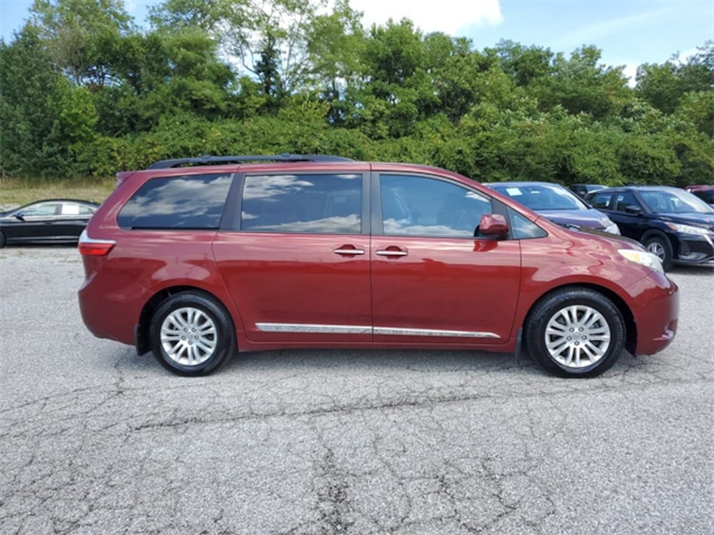 This 2016 Toyota Sienna XLE comes equipped with ABS brakes, Alloy wheels, Bumpers: body-color, Compass, Electronic Stability Control, Front dual zone A/C, Heated door mirrors, Heated Front Bucket Seats, Heated front seats, Illuminated entry, Leather Seat Material, Low tire pressure warning, Power door mirrors, Power Liftgate, Power moonroof, Remote keyless entry, Roof rack: rails only, Spoiler, Traction control, 3rd row seats: split-bench, 4-Wheel Disc Brakes, 6 Speakers, Air Conditioning, AM/FM radio: SiriusXM, Auto-dimming Rear-View mirror, Automatic temperature control, Axle Ratio: 3.94, Brake assist, CD player, Delay-off headlights, Door auto-latch, Driver door bin, Driver vanity mirror, Driver's Seat Mounted Armrest, Dual front impact airbags, Dual front side impact airbags, Exterior Parking Camera Rear, Front anti-roll bar, Front Bucket Seats, Front fog lights, Front reading lights, Front wheel independent suspension, Fully automatic headlights, Garage door transmitter: HomeLink, Knee airbag, Lift Up Seat Camping Car, Occupant sensing airbag, Outside temperature display, Overhead airbag, Overhead console, Panic alarm, Passenger door bin, Passenger seat mounted armrest, Passenger vanity mirror, Power driver seat, Power passenger seat, Power steering, Power windows, Radio data system, Radio: AM/FM/HD/CD w/6 Speakers, Rear air conditioning, Rear anti-roll bar, Rear reading lights, Rear window defroster, Rear window wiper, Reclining 3rd row seat, Security system, Speed control, Speed-sensing steering, Split folding rear seat, Steering wheel mounted audio controls, Tachometer, Telescoping steering wheel, Tilt steering wheel, Trip computer, Variably intermittent wipers, and Wheels: 17" x 7" 7-Spoke Machine-Finished Alloy.